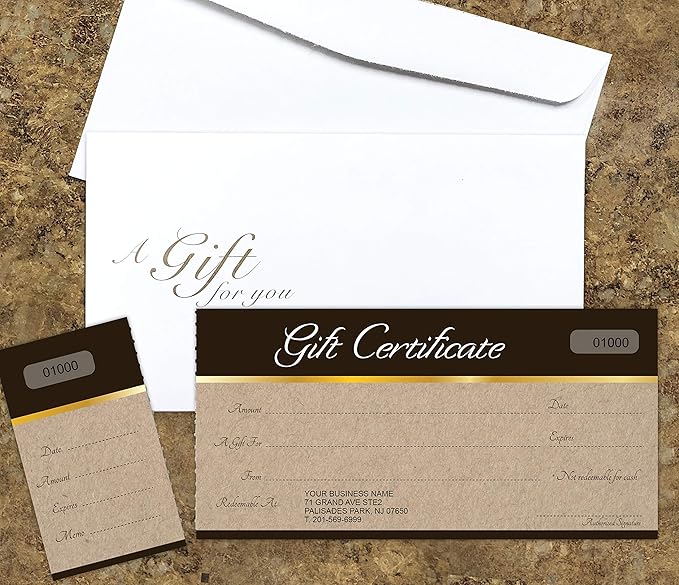 IMPACTONLINEPRINTING Custom Gift Certificates Cards with Envelopes 100 set - Sephia on kraft backgound image - Gift Certificates for Small Business