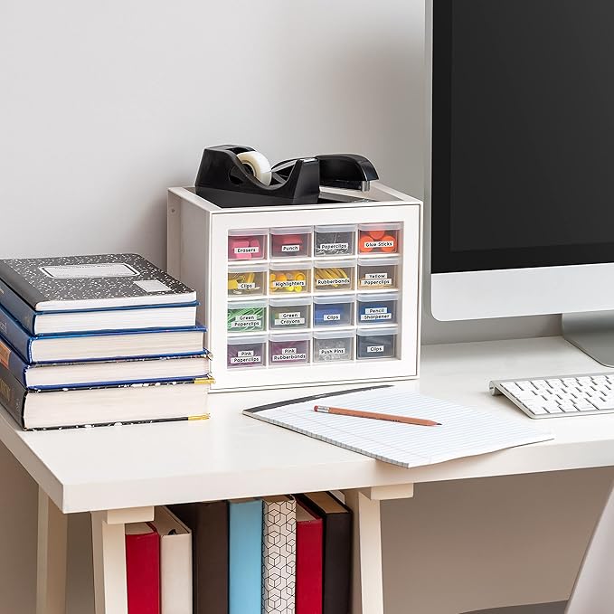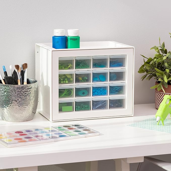 IRIS USA Small Drawer Organizer Storage, 16-Drawer Craft Cabinet for Screws Hardware Art Supplies Small Parts Nuts Bolts Nails Tool Container, Drink Packet and Water Flavor Packet Organizer, White