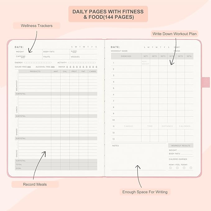 - 【Eat Healthier & Build A Stronger Body】Writing down your exercise and diet plan can help you become more aware of your diet and exercise habits. Identifying the factors that contribute to unhealthy eating habits or a lack of physical activity in order to develop effective strategies to address these challenges.